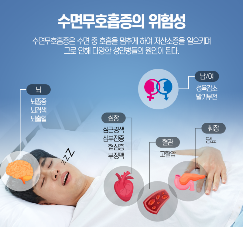 이 원인들이 복합적으로 작용해 호흡 통로가 좁아지거나 완전히 막히면, 산소 공급이 끊기고 그 즉시 심장과 뇌에 부담이 가해집니다. 문제는 이런 과정이 본인도 모르는 사이에 반복된다는 겁니다.