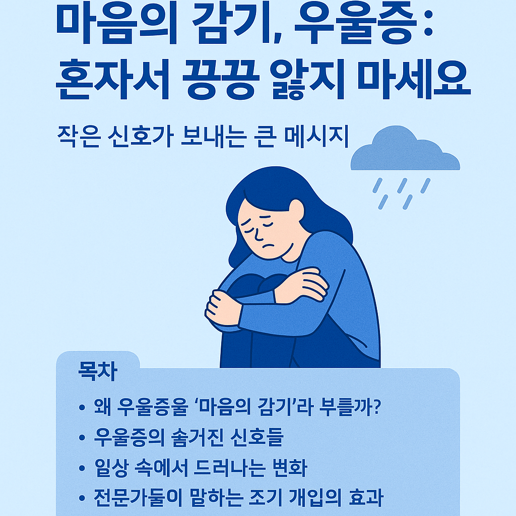 스스로 괜찮다며 끙끙 앓기보다, 작은 신호를 놓치지 않고 이야기할 수 있는 환경이 필요합니다. 오늘은 우울증을 왜 ‘마음의 감기’라고 부르는지, 그리고 혼자 감당하지 말아야 하는 이유에 대해 함께 살펴보려 해요.🙂