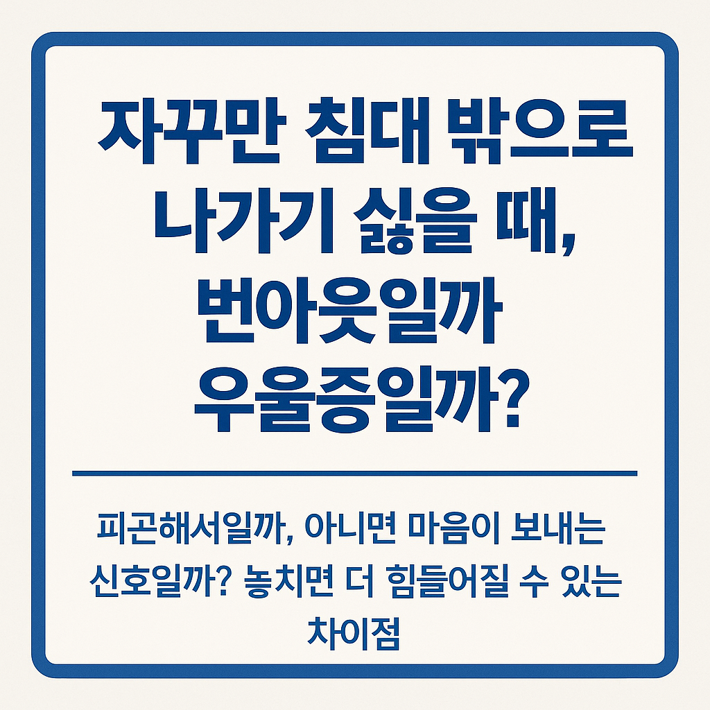눈을 떠도 몸이 무겁고, 침대 밖으로 나가는 일이 마치 큰 전쟁처럼 느껴지는 날이 있습니다. 단순히 피곤해서일 수도 있지만, 계속 반복된다면 번아웃이나 우울증의 신호일 수 있어요. 많은 사람들이 두 상태를 헷갈려 하지만, 사실 원인과 대처 방법은 조금씩 다릅니다.