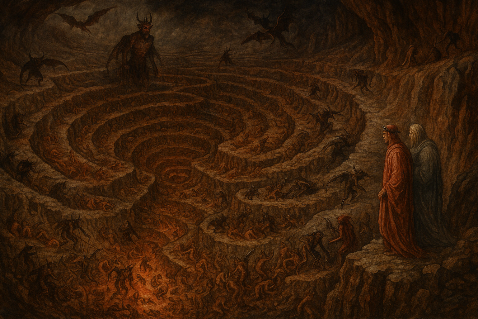 『신곡』 지옥편에서 단테는 거짓말을 저지른 영혼들을 8번째 지옥 원인 ‘말레볼제(Malebolge)’로 보냈어요. 여기서 죄인들은 열 개의 도랑(Bolgia)에 나뉘어 각자의 죄에 따라 처벌을 받아요. 특히, 사기와 기만을 일삼은 자들이 주로 이곳에 모여 있죠. 단테는 진실을 의도적으로 왜곡하거나, 타인을 유혹하고 속인 자들을 가장 경멸했어요.