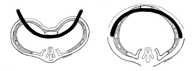 | Nuss 수술 | 심한 오목가슴 | 흉곽 안에 금속 바 삽입 후 교정 |