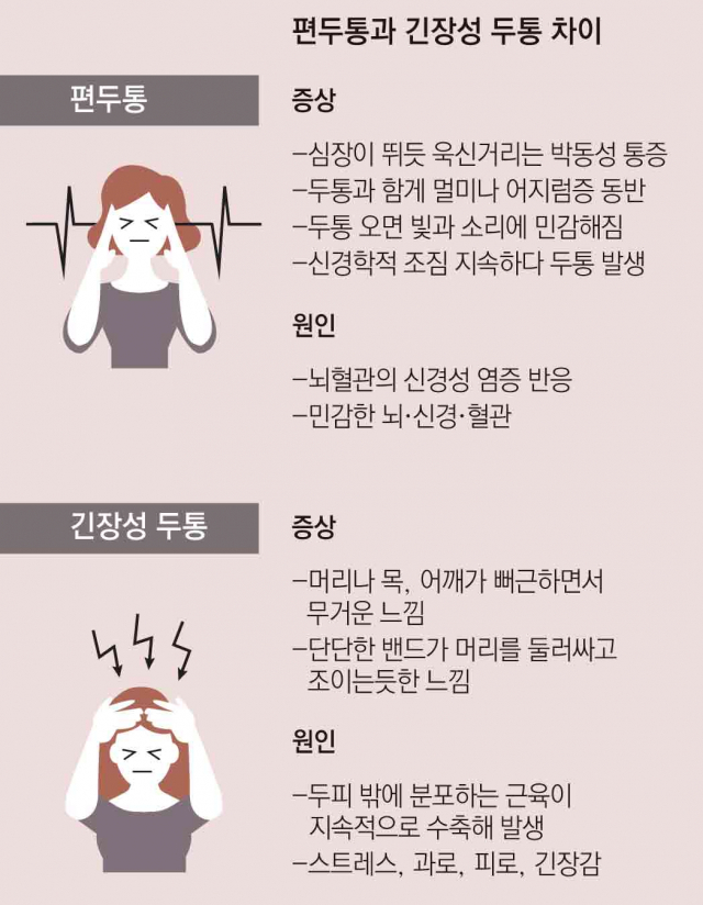 두통이 어떤 상황에서 심해지는지를 관찰하는 것도 중요한 구분법입니다.